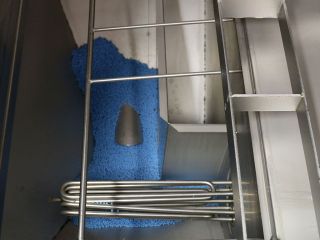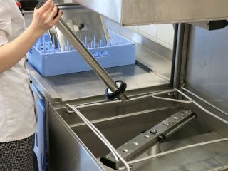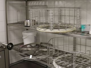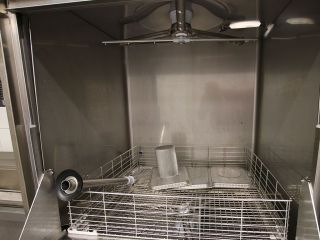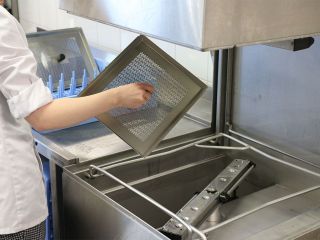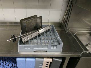 Kupukoneen vedenvaihdon yhteydessä siivilät ja kone huuhdellaan.