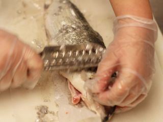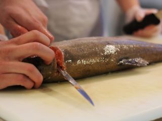 Kalojen voidaan suomustaa samalla työpöydällä, jossa valmistetaan lounaan salaatteja.